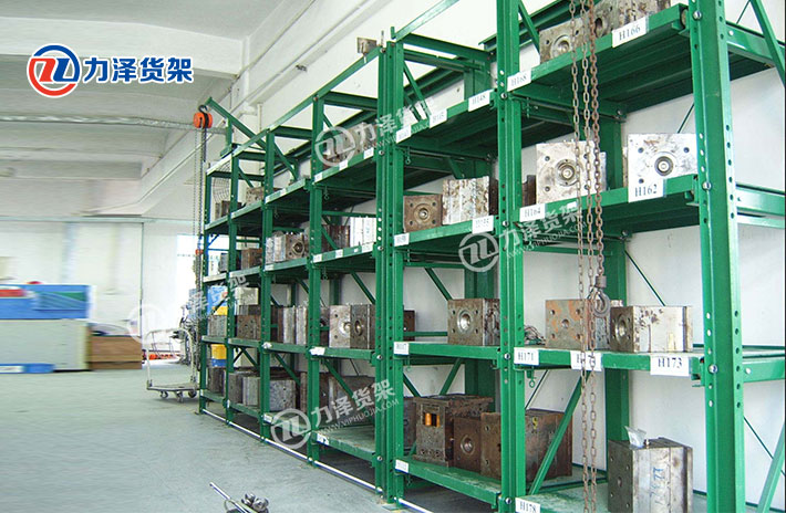 模具貨架主要由槽鋼立柱與滑槽、重型層板組合而成,結(jié)構(gòu)既穩(wěn)定又安全。模具貨架可拆卸組裝,承載量極大,因?yàn)槭怯脕韺iT放置各類塑膠模具、五金模具、壓鑄模具、粉末冶金模具、擠壓模具。模具貨架的工作原理一般是通過自身裝備的葫蘆小吊車來輕松起吊模具,模具放在層板上,而層板通過滑軌進(jìn)出,層板的高度可以調(diào)節(jié)。模具貨架占地少、層重大、分類詳細(xì)、操作簡(jiǎn)單。